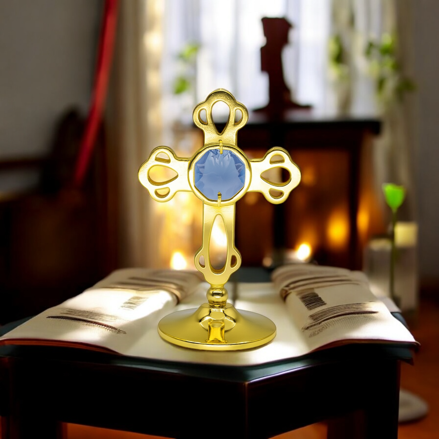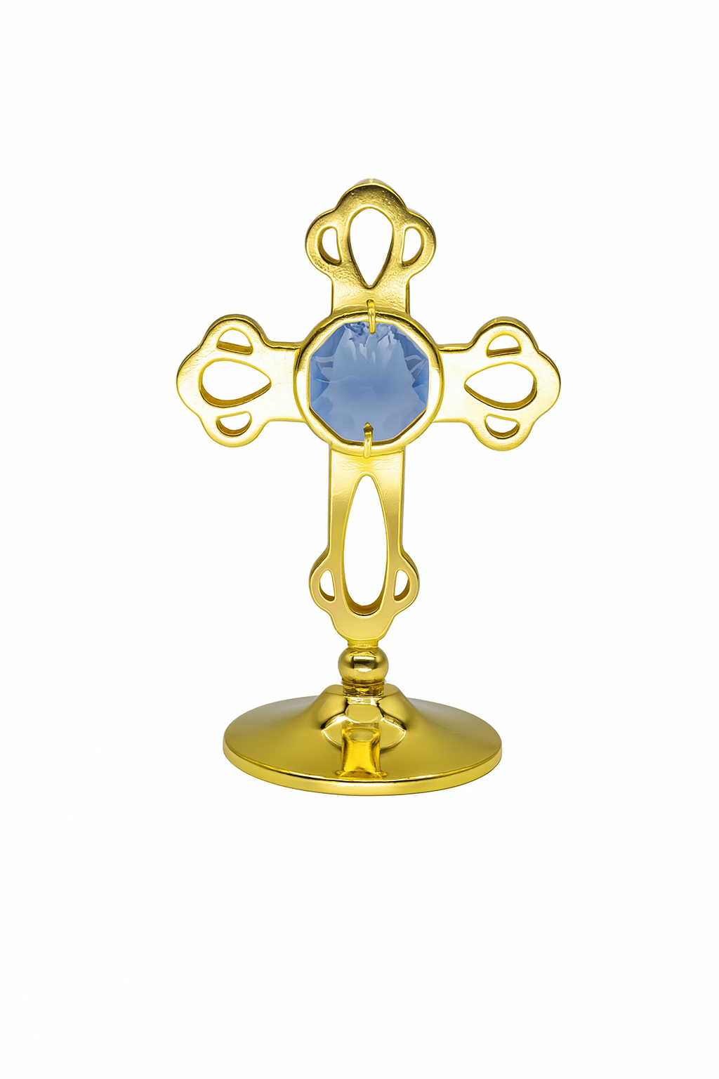 24-karaats verguld sierkruis met blauw Bohemen kristal