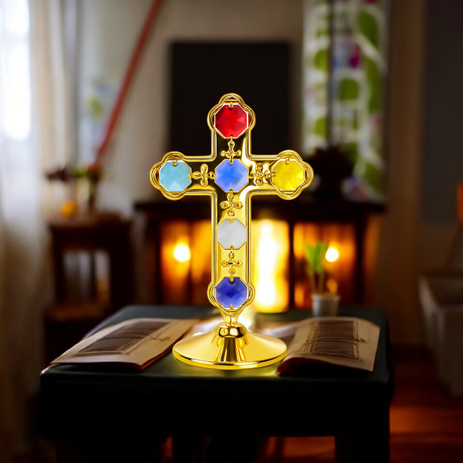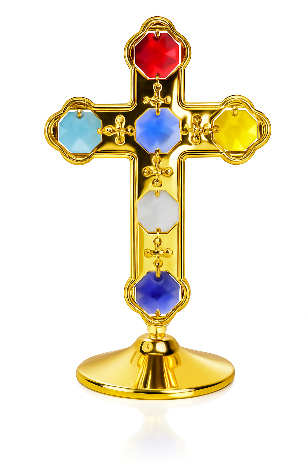 24-karaats goud verguld kruis versierd met gekleurde Bohemia kristallen