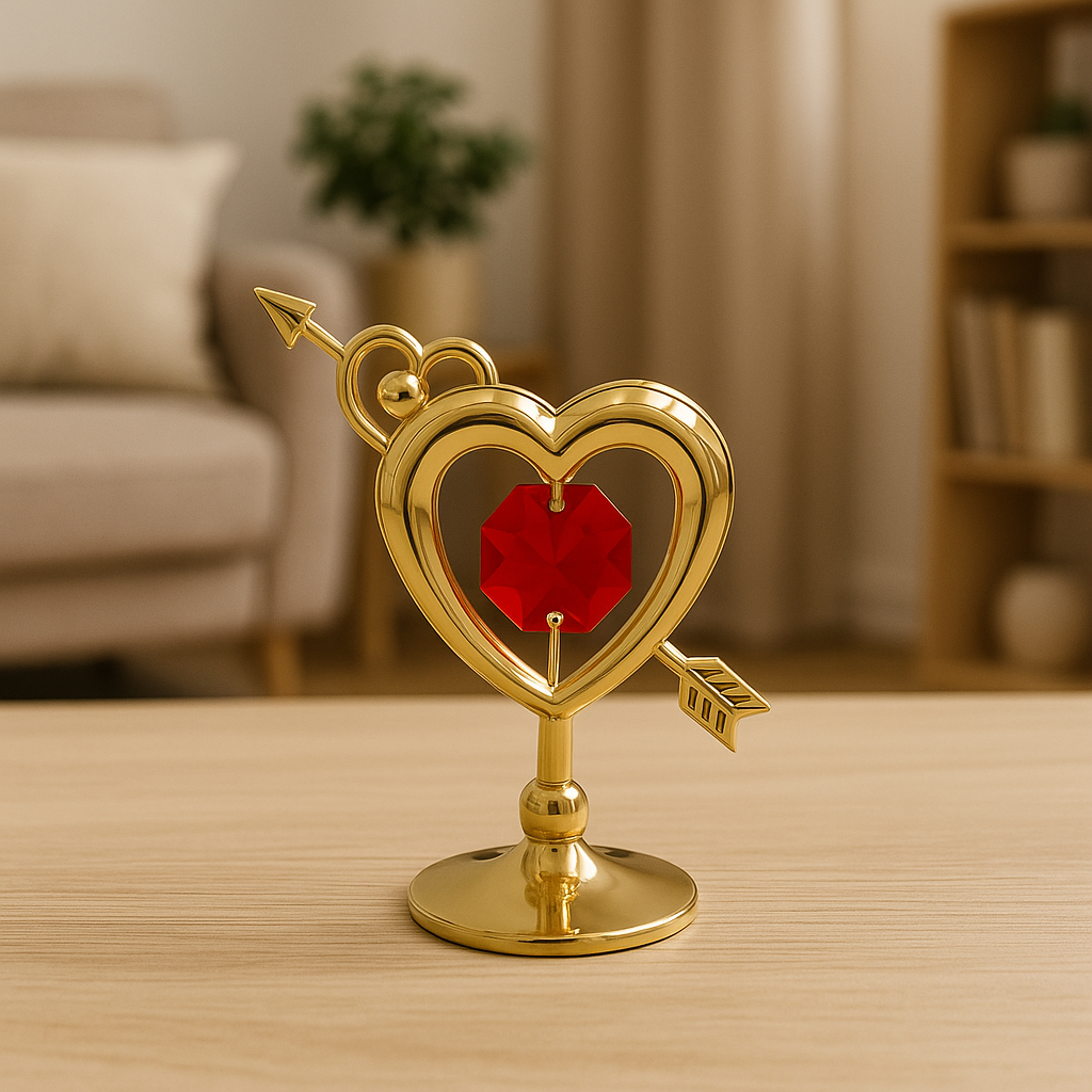 Dit schattige 24K vergulde hartje is geraakt door Cupido’s pijl en schittert dankzij de dieprode Bohemia-kristal in het midden. Een klein kunstwerkje vol romantiek ✨