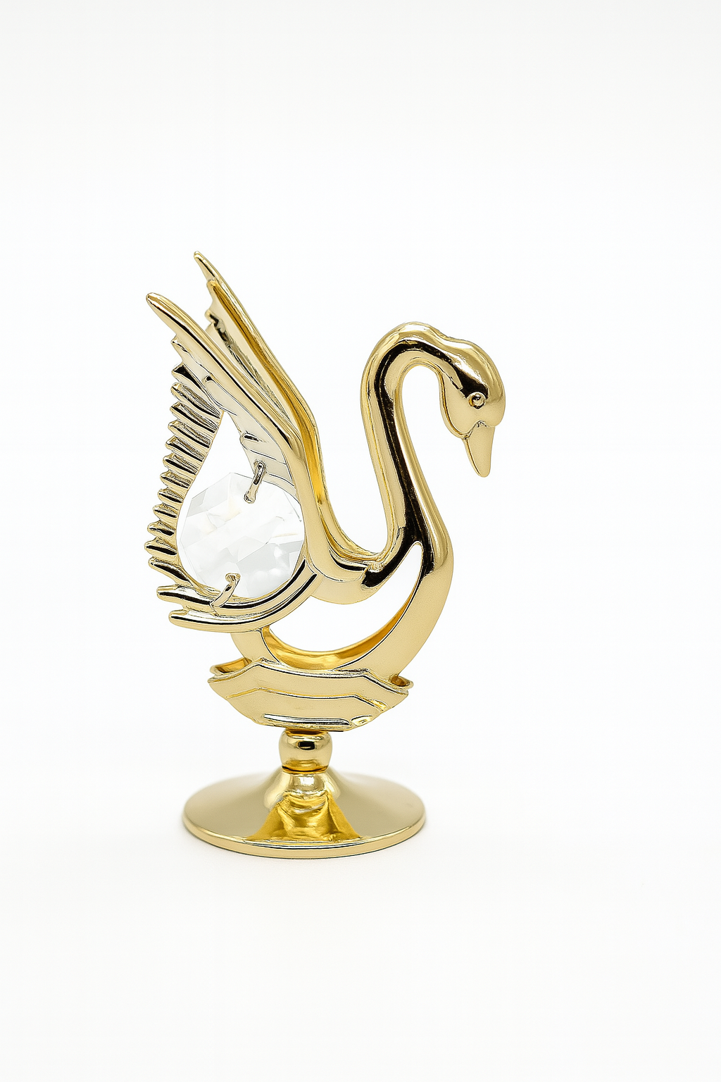 Gouden Zwaan met Kristal – Elegant Tafeldecor van Crystocraft