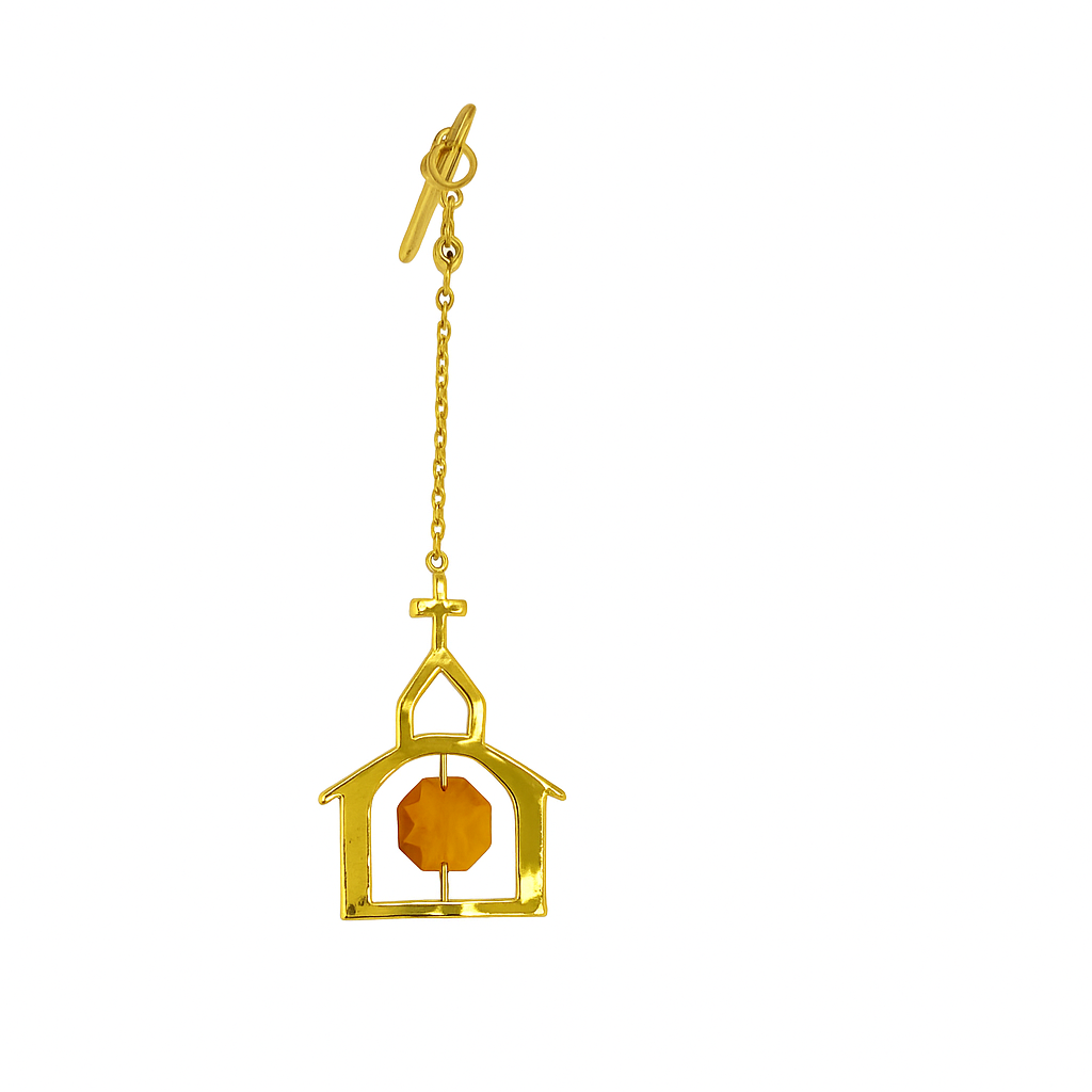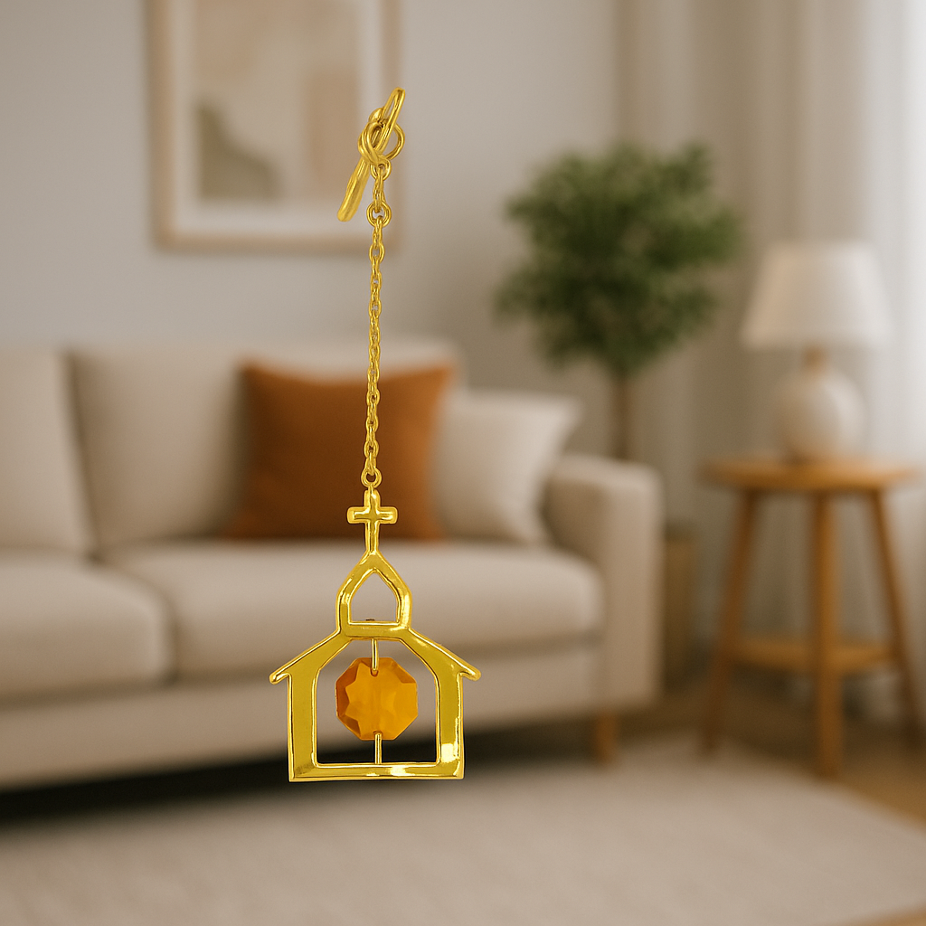 Een elegant 24-karaats verguld kerkje met een fonkelende Swarovski-kristal in het midden. Dit verfijnde ornament straalt een huiselijke rust uit en is ideaal als symbolisch cadeau of sfeervol decoratiestuk in je interieur.