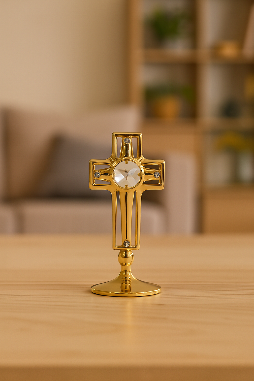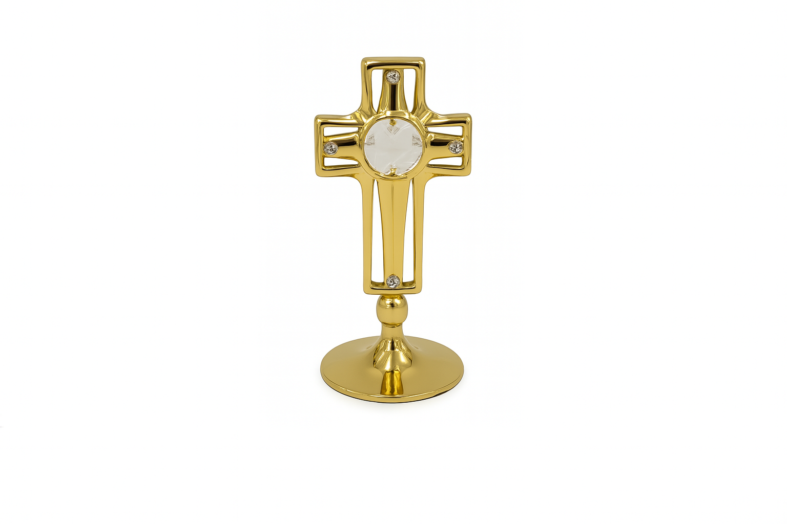 Dit elegant vormgegeven kruisbeeld is verguld met 24-karaats goud en verbeterd met betrouwbare Bohemen-kristallen die het licht op magische wijze vangen. Of je het nu een mooi plekje geeft in huis of cadeau doet bij een bijzondere gelegenheid β dit beeldje straalt roest, geloof en verfijning uit.