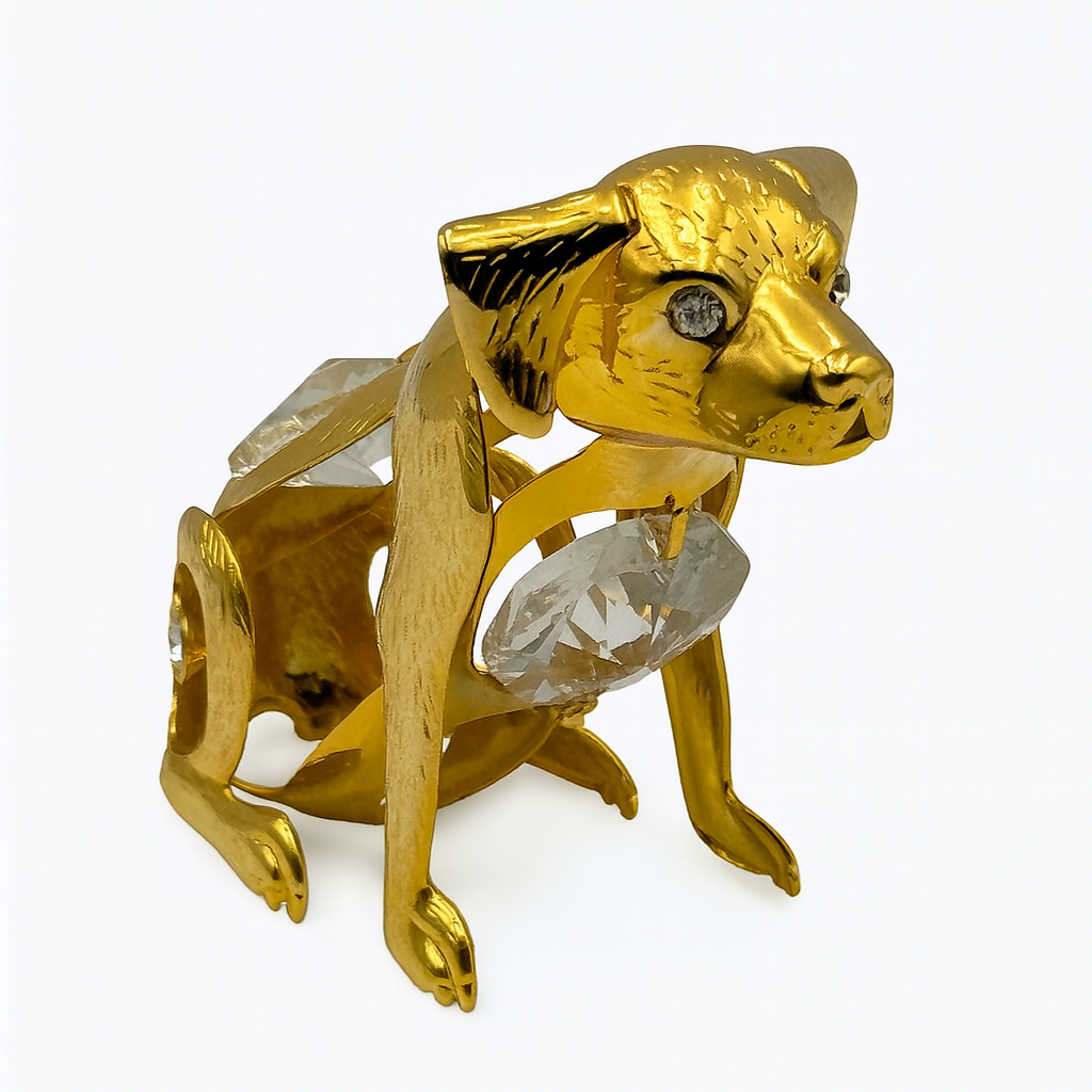 Hondje versierd met Bohemia-kristallen 24-karaats verguld goud