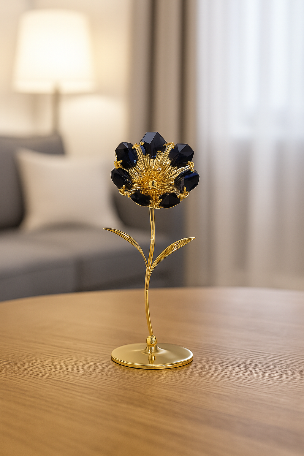 Laat je interieur bloeien met deze prachtige handgemaakte bloem , rijkelijk verguld met 24-karaats goud en bezet met diepdonkerpaarse kristallen blaadjes.